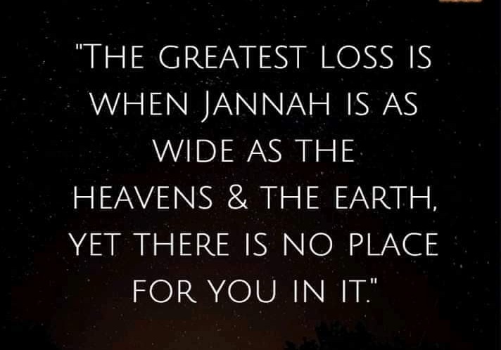 The greatest loss is when there is no place for you in heaven, despite it being thousands of times wider than the earth.